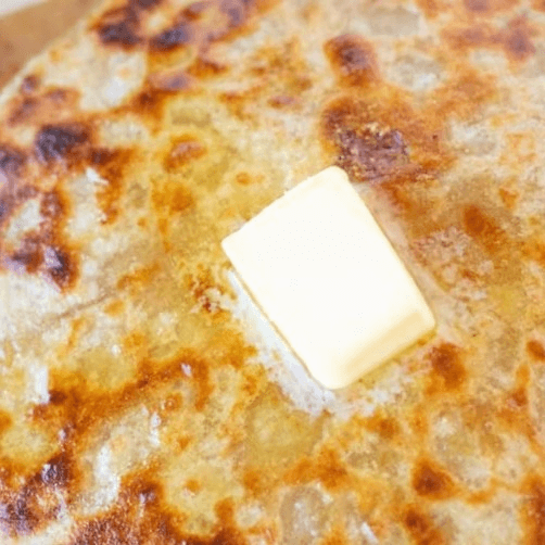 Whole wheat flatbread stuffed with a spiced mashed potato filling, pan-fried until golden brown. Served hot with butter, yogurt, or pickle - comfort food at its finest