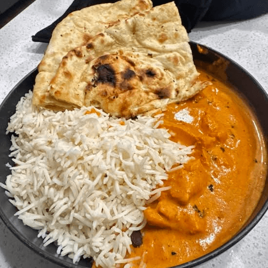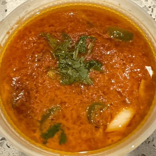 Tender chicken pieces simmered in a rich onion-tomato gravy, flavored with garlic, ginger, and a traditional blend of Indian spices. A comforting and timeless dish served best with rice or naan. Served with rice