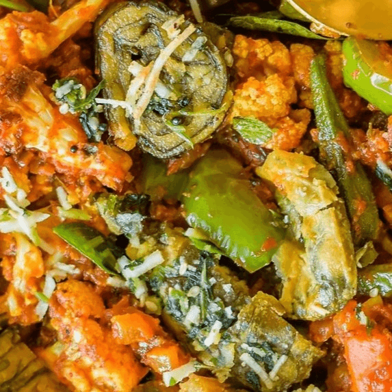 A spicy and flavorful North Indian-style curry cooked in our house-blend chili masala with bold spices and slow-simmered perfection. Key ingredients: choice of protein (lamb, chicken, paneer, shrimp, or veggie), house chili masala (red chilies, cumin, coriander, garam masala) garlic & ginger, onion-tomato base, fresh herbs, whole spices (cloves, cardamom, bay leaf). Served with rice