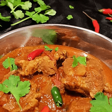 Tender lamb slow-cooked in a robust onion-tomato gravy, seasoned with garlic, ginger, and a rich blend of Indian spices. Deeply flavorful and comforting with every bite. Served with rice