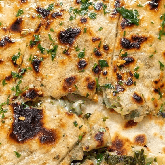 Spinach or Spanish cheese. Soft, tandoor-baked naan stuffed with seasoned spinach and herbs, then brushed with butter. A flavorful and nutritious twist on the classic naan