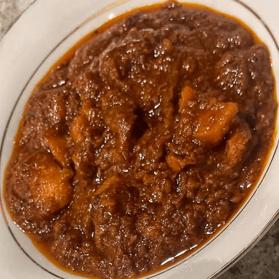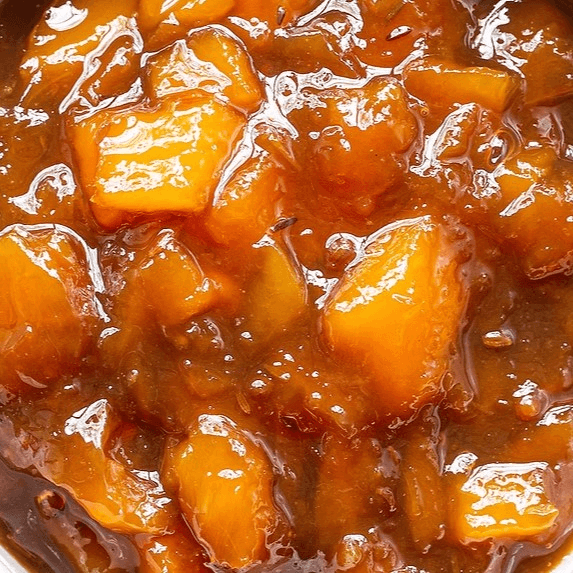 A flavorful blend of ripe mangoes, sugar, vinegar, and warm spices. This sweet and mildly spiced chutney is the perfect dip or side to complement savory dishes