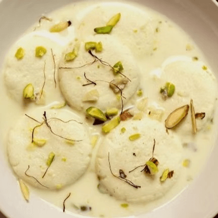 Soft cottage cheese dumplings soaked in sweet, saffron-infused milk and garnished with crushed pistachios and cardamom. A classic Indian dessert that’s creamy, delicate, and melts in your mouth