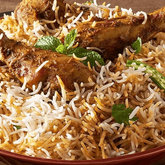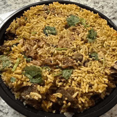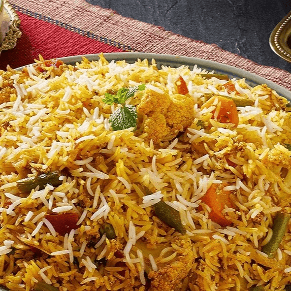 A fragrant, regal rice dish layered with your choice of protein, aromatic basmati rice, and slow-cooked spices - garnished with fried onions, saffron, and herbs. Key ingredients: aged basmati rice, saffron & rose water fried onions, whole spices (cinnamon, cardamom, cloves), mint, cilantro & lemon