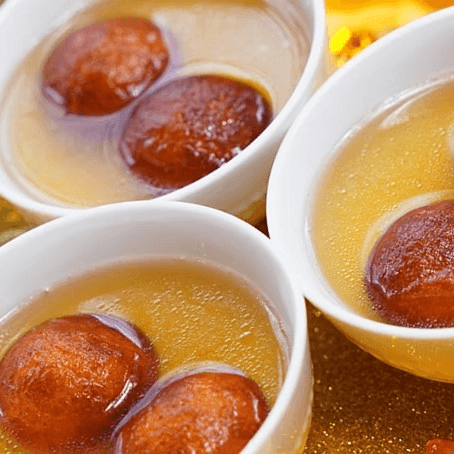 Soft, deep-fried milk dumplings soaked in warm rose-scented sugar syrup. Served hot or cold, this timeless Indian dessert is rich, sweet, and irresistibly indulgent