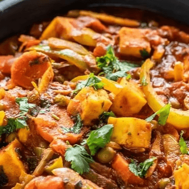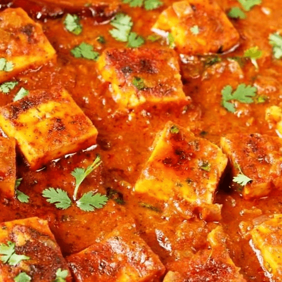 Soft paneer cubes simmered in a rich tomato-onion gravy, infused with garlic, ginger, and traditional Indian spices. Creamy, flavorful, and perfect with rice or naan. Served with rice