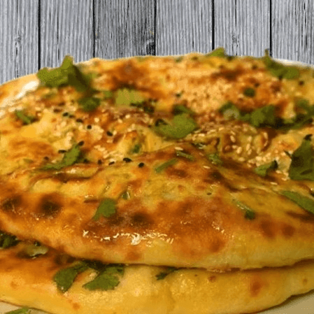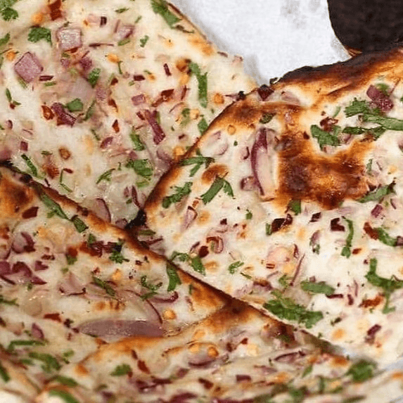 Tandoor-baked naan stuffed with finely chopped onions, herbs, and mild spices, then brushed with butter. Savory, aromatic, and a perfect side to any curry