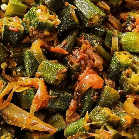Okra cooked with sautéed onions, tomatoes and special herb & spices. Served with rice
