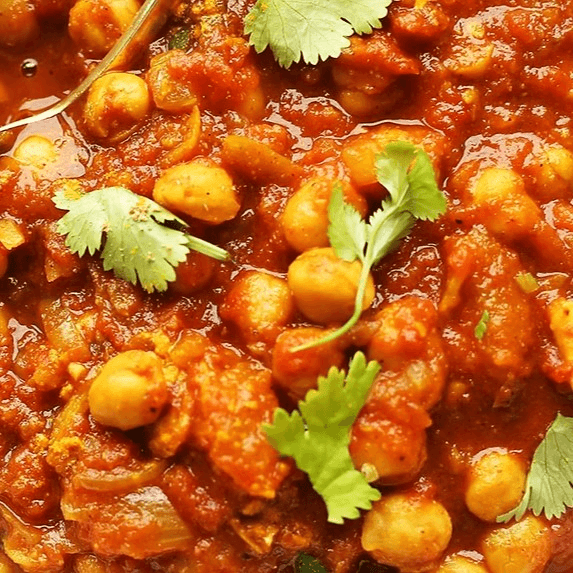 Chana masala, a popular Indian chickpea curry, typically includes chickpeas, onions, tomatoes, garlic, ginger, and a blend of spices like coriander, cumin, turmeric, and garam masala. Other ingredients may include bay leaves, green chilies, served with rice