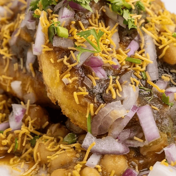 Aloo chole tikki chaat is a delicious, spicy, and tangy snack made with crispy potato tikkis, flavorful chole (chickpeas), and topped with a variety of chutneys, spices, and yogurt